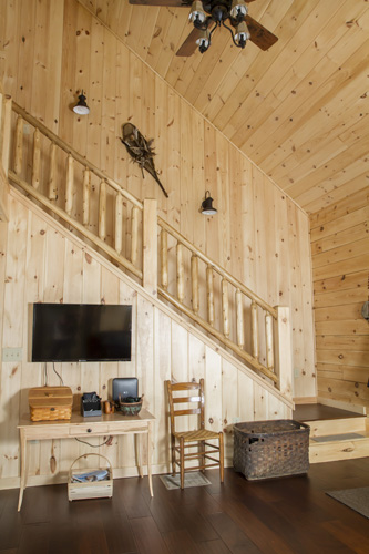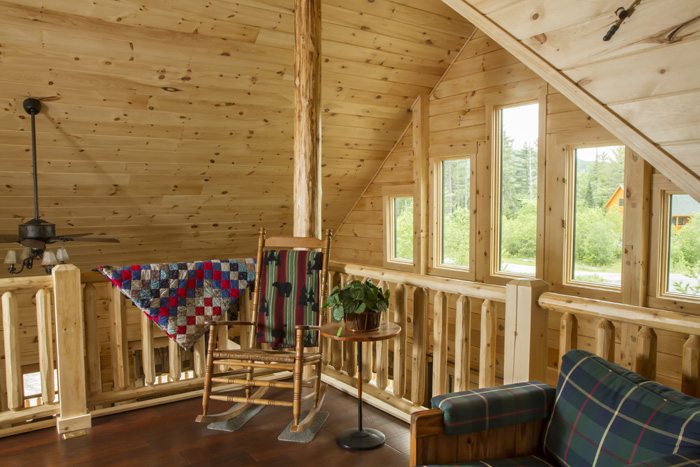 This Pine Ridge log home model features a classic rustic design with a welcoming covered porch, full log gables, and a thoughtfully laid-out two-story floor plan. The main level offers an open living, dining, and kitchen area, along with a master bedroom, bath, mudroom/laundry, and pantry for comfortable everyday living. Upstairs, a spacious open loft, additional bedrooms, bath, and office/bedroom overlook the living area, creating an airy and functional retreat-style home.